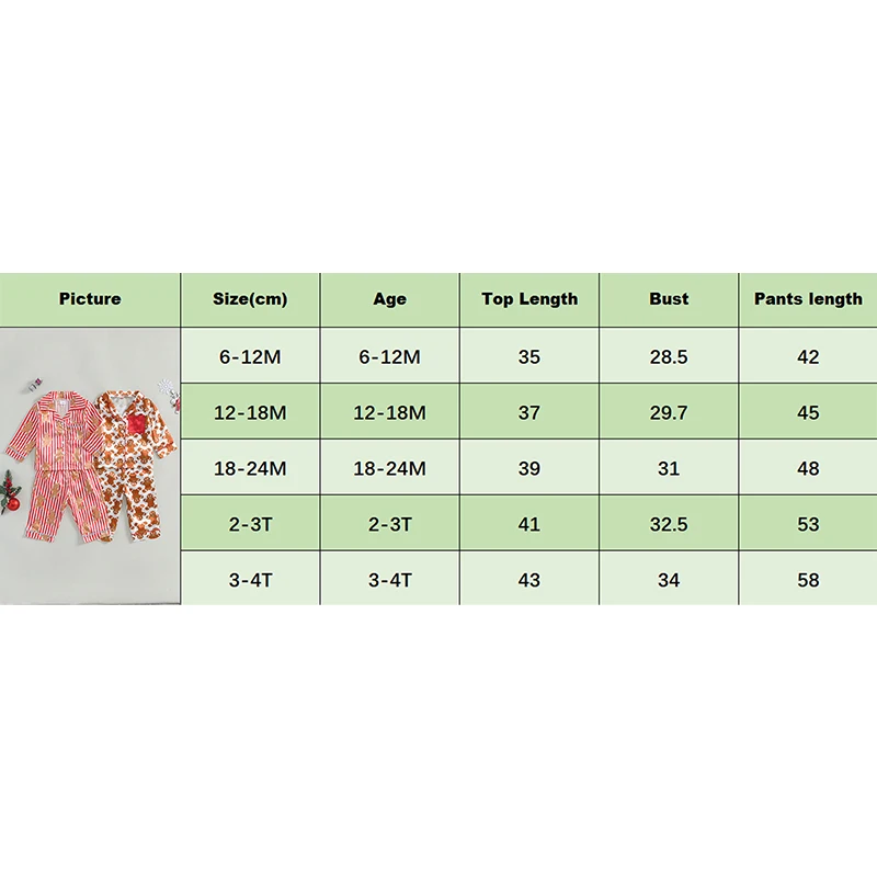 2-3Y Tops Length: 16.14 Bust: 25.59 Pants Length: 20.87 Advised Age: 2-3 Years