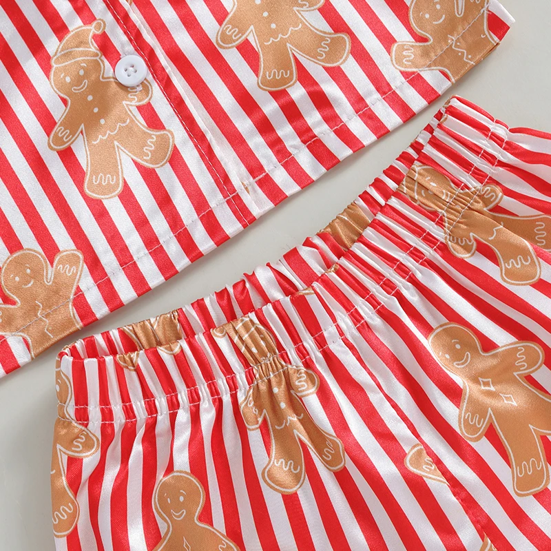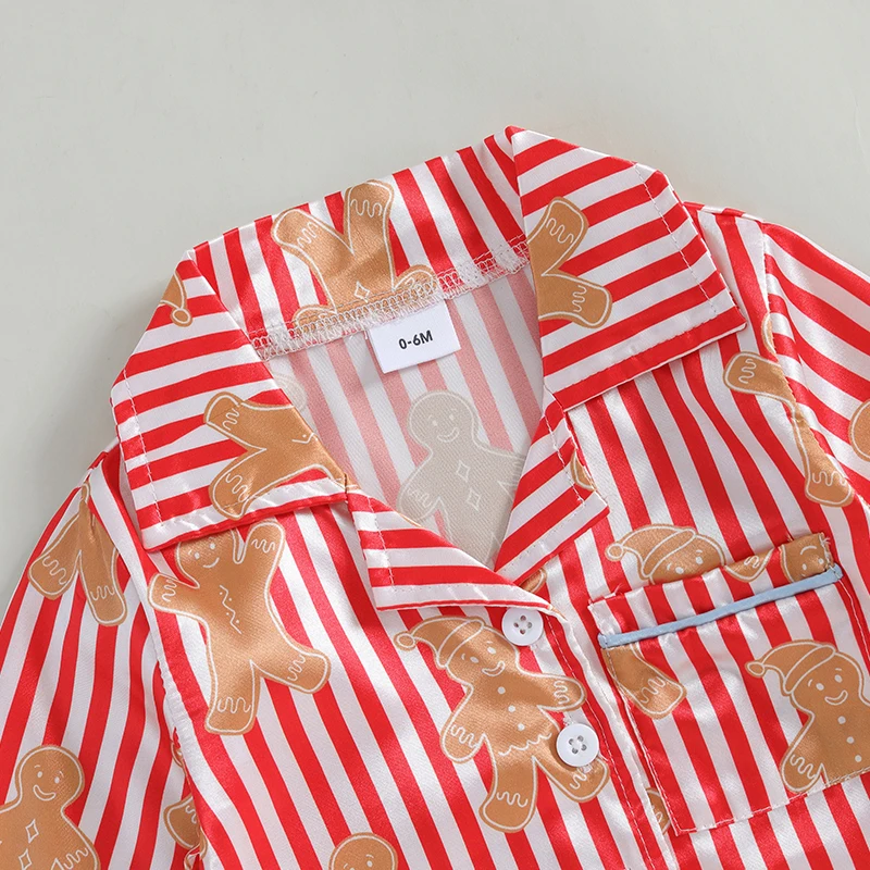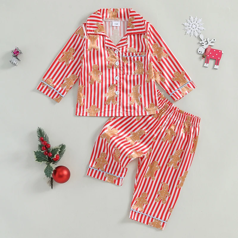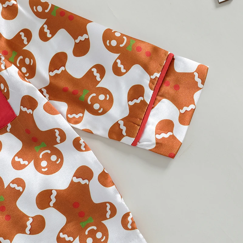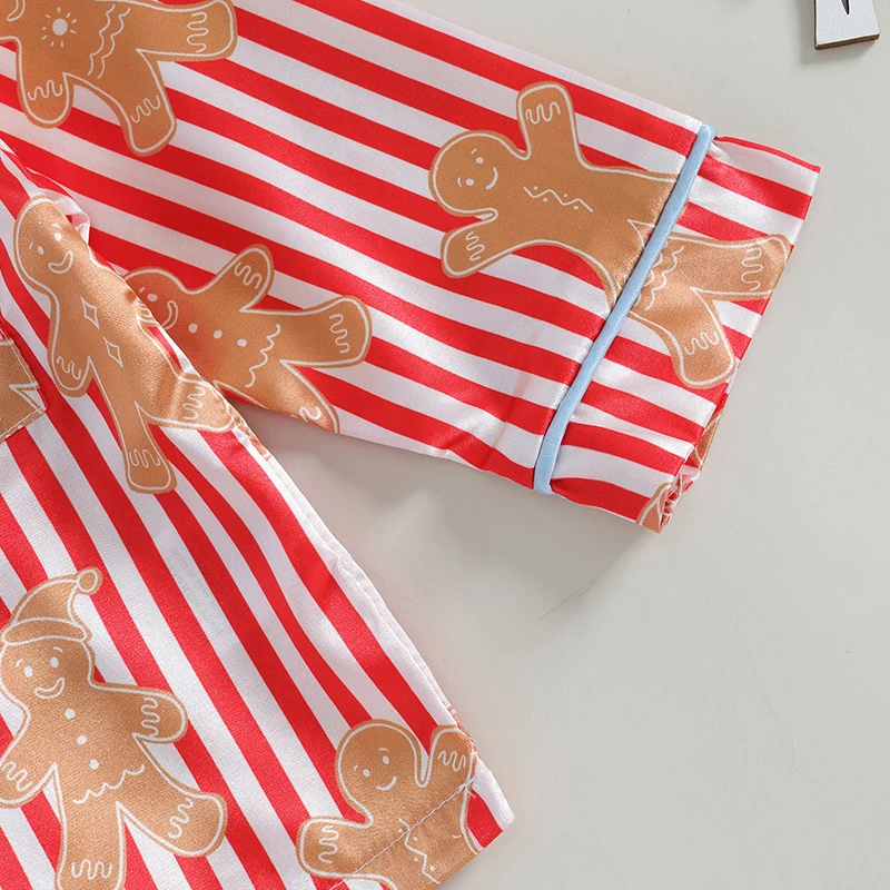 0-4Y Little Kids Girls Christmas Pajama Clothes Sets Long Sleeve Lapel Gingerbread Man Print Shirt Pants