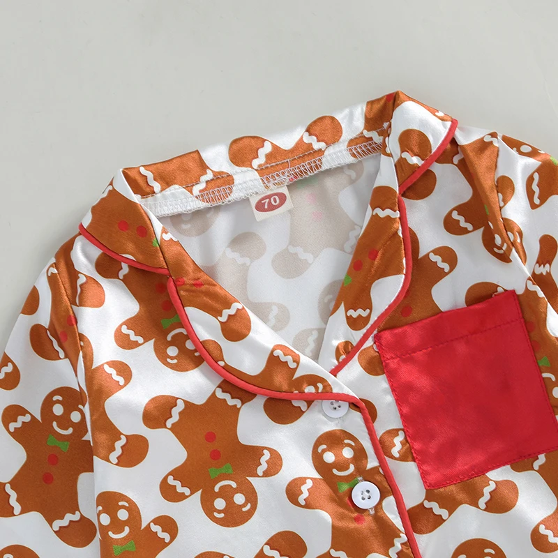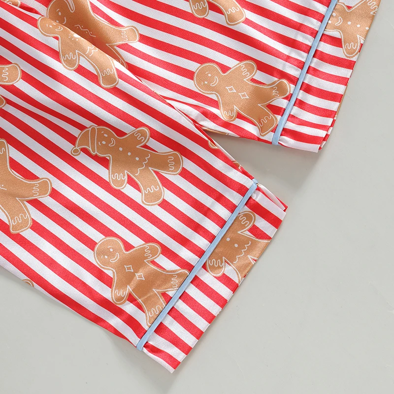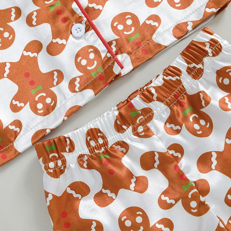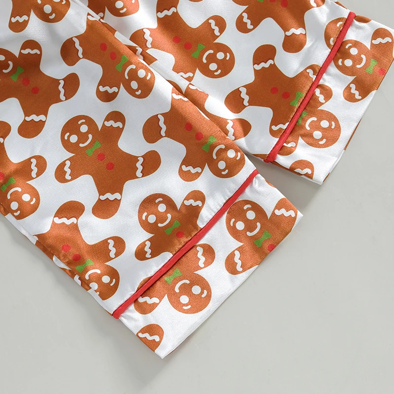 Girls Christmas Pajama Sets Long Sleeve Lapel Gingerbread Man Print Shirt Pants Sleepwear