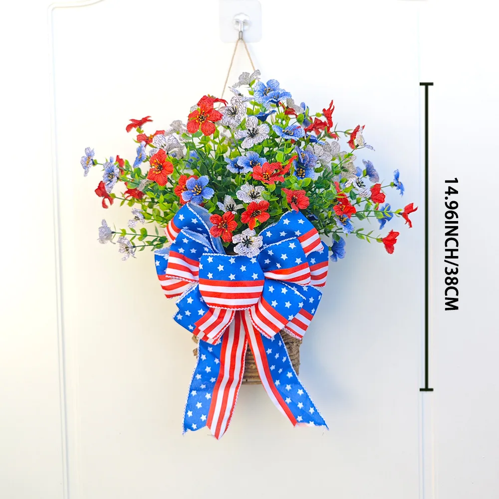 Artificial Flower Wreath Spring Summer Wildflowers Door Hanging Basket Wreath Pink Berry Hanger Wreath Farmhouse Cottage Garlands