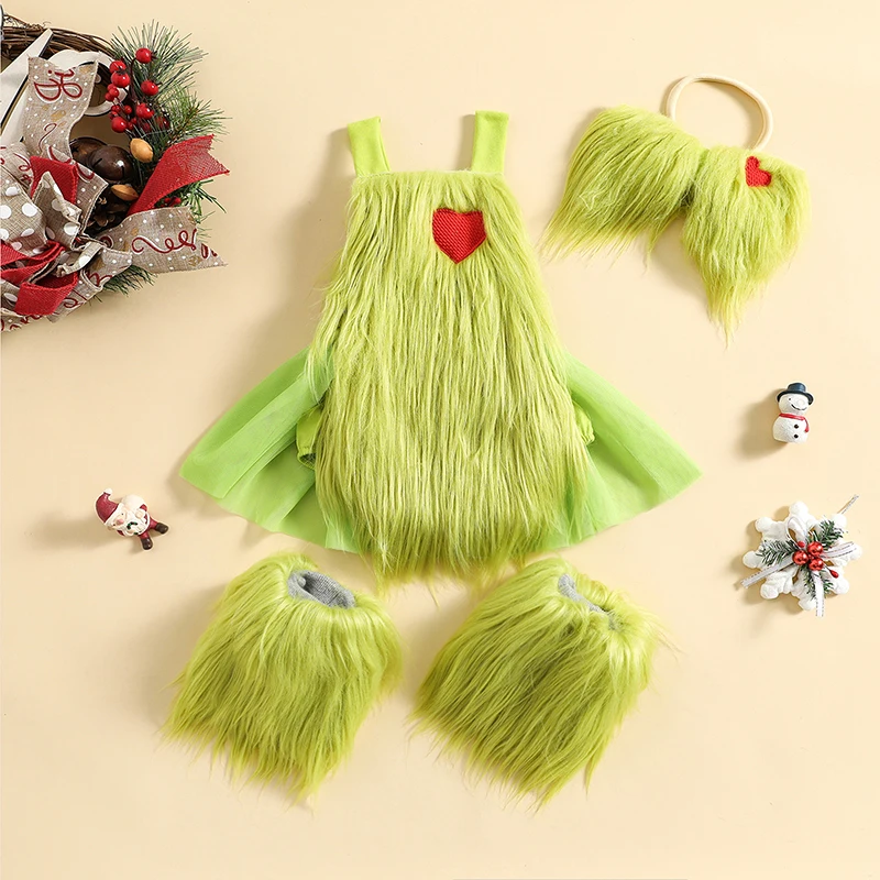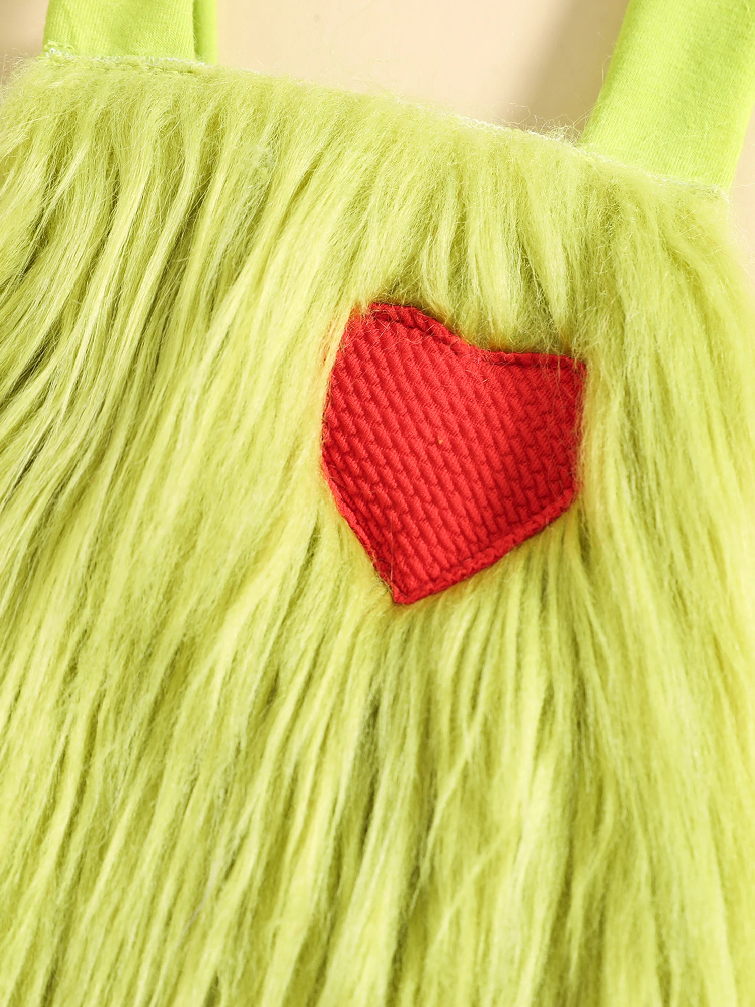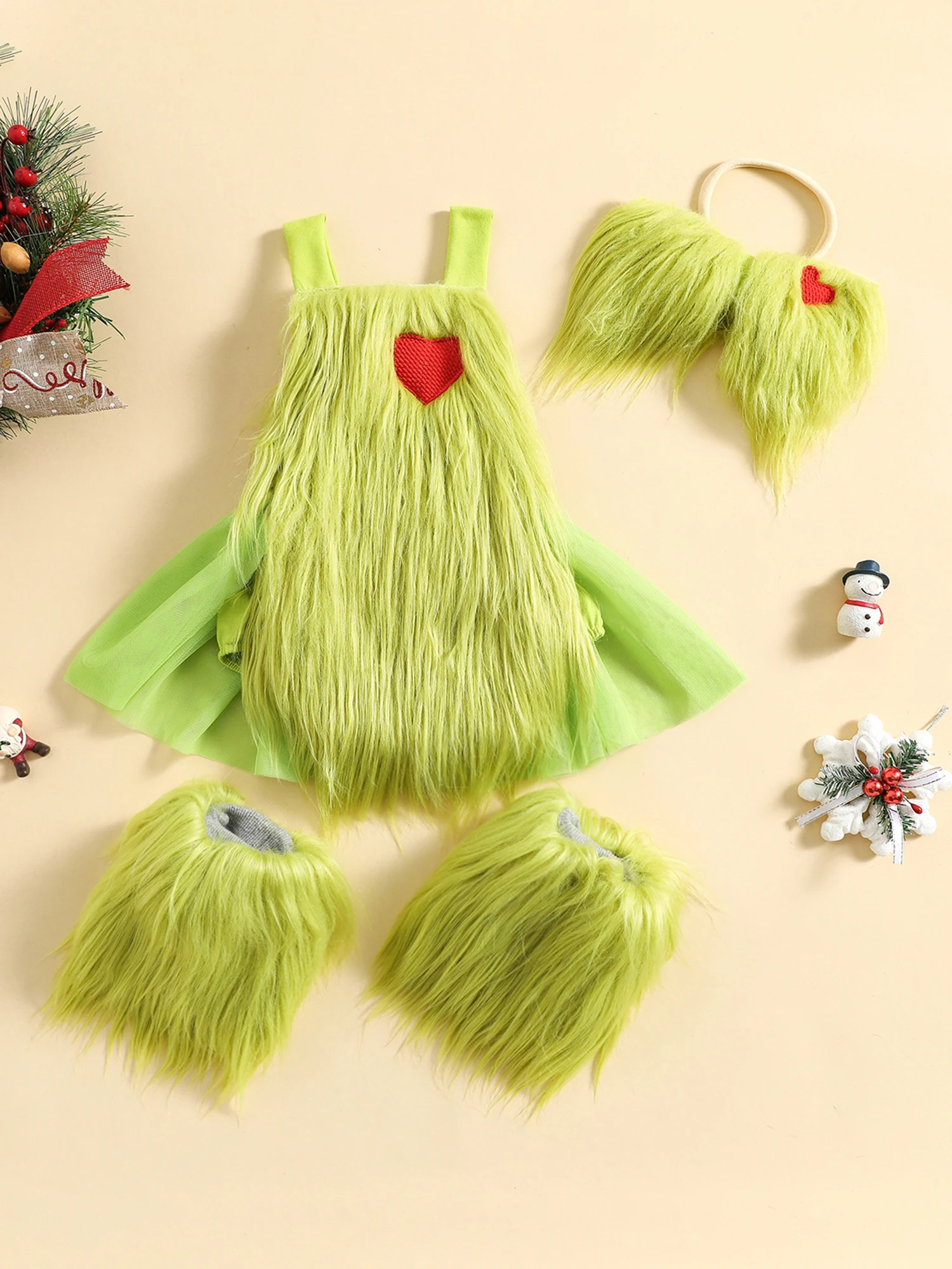 Baby Girls 3Pcs Christmas Costume, Furry Sleeveless Romper + Leg Warmers + Headband Set