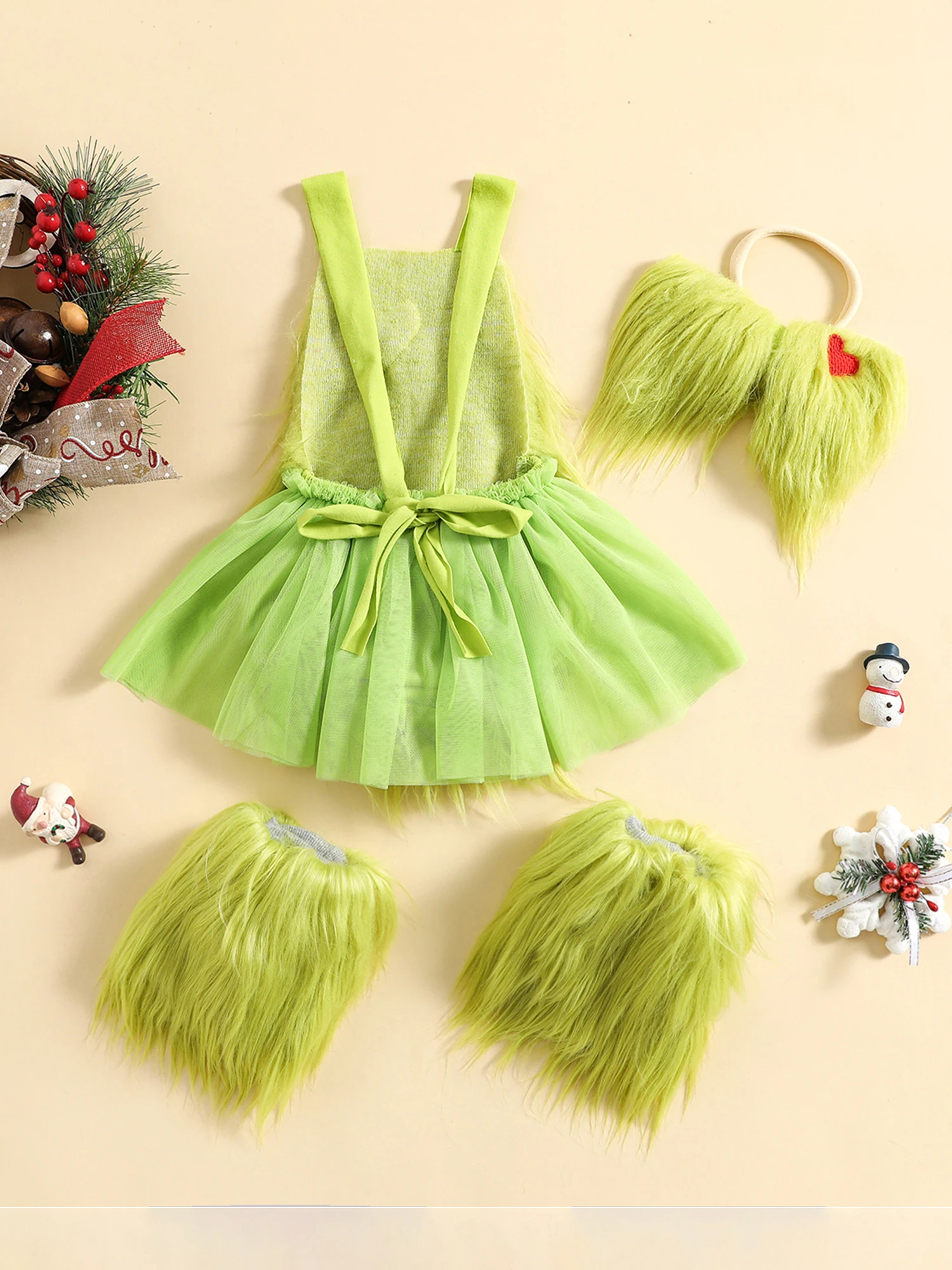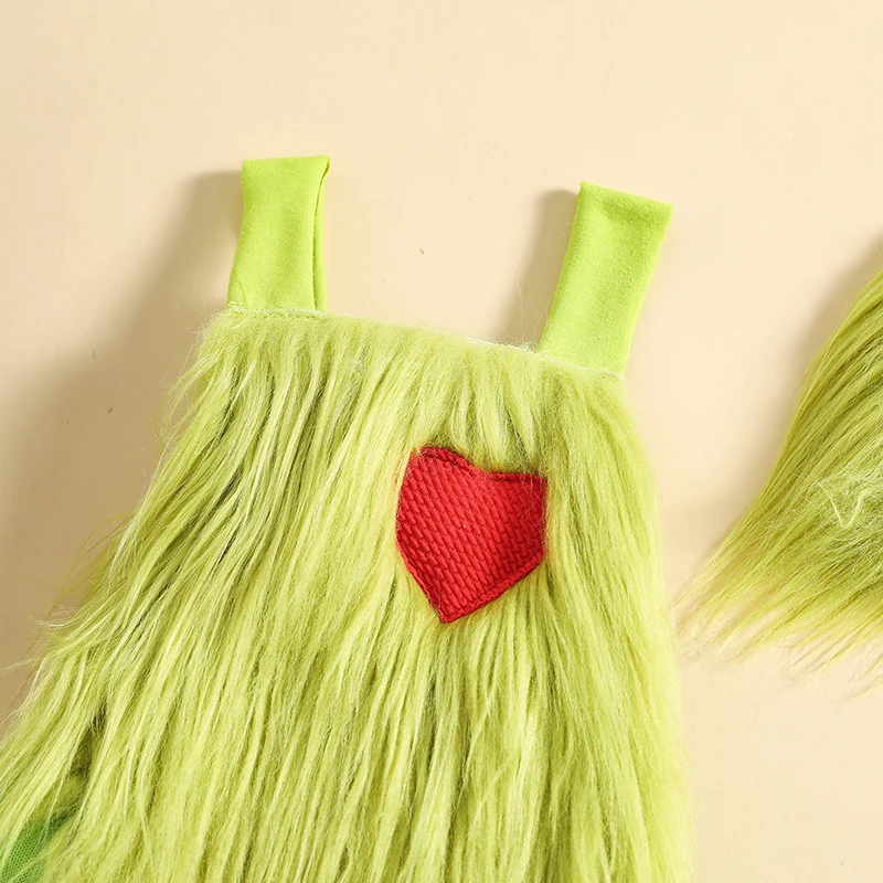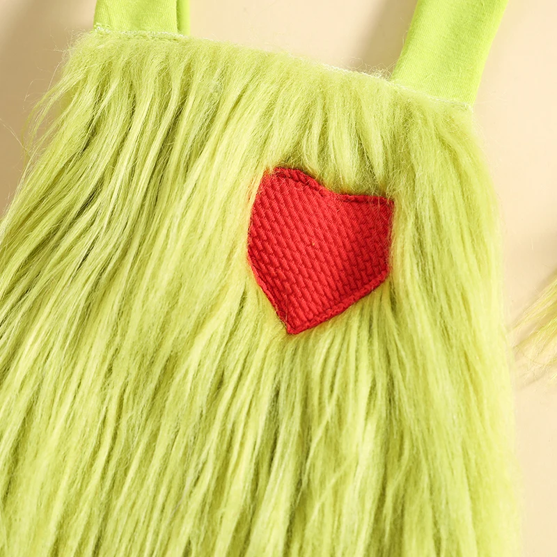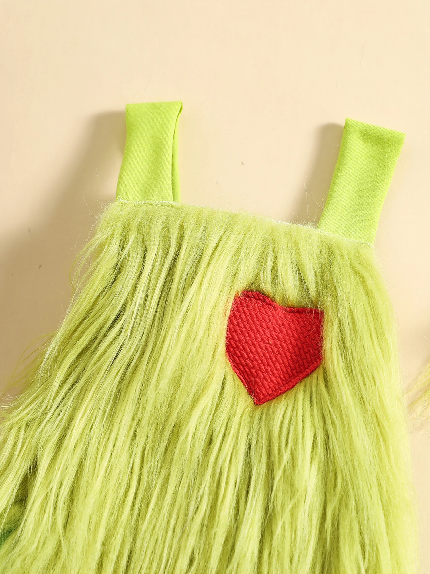 Baby Girls 3Pcs Christmas Costume, Furry Sleeveless Romper + Leg Warmers + Headband Set