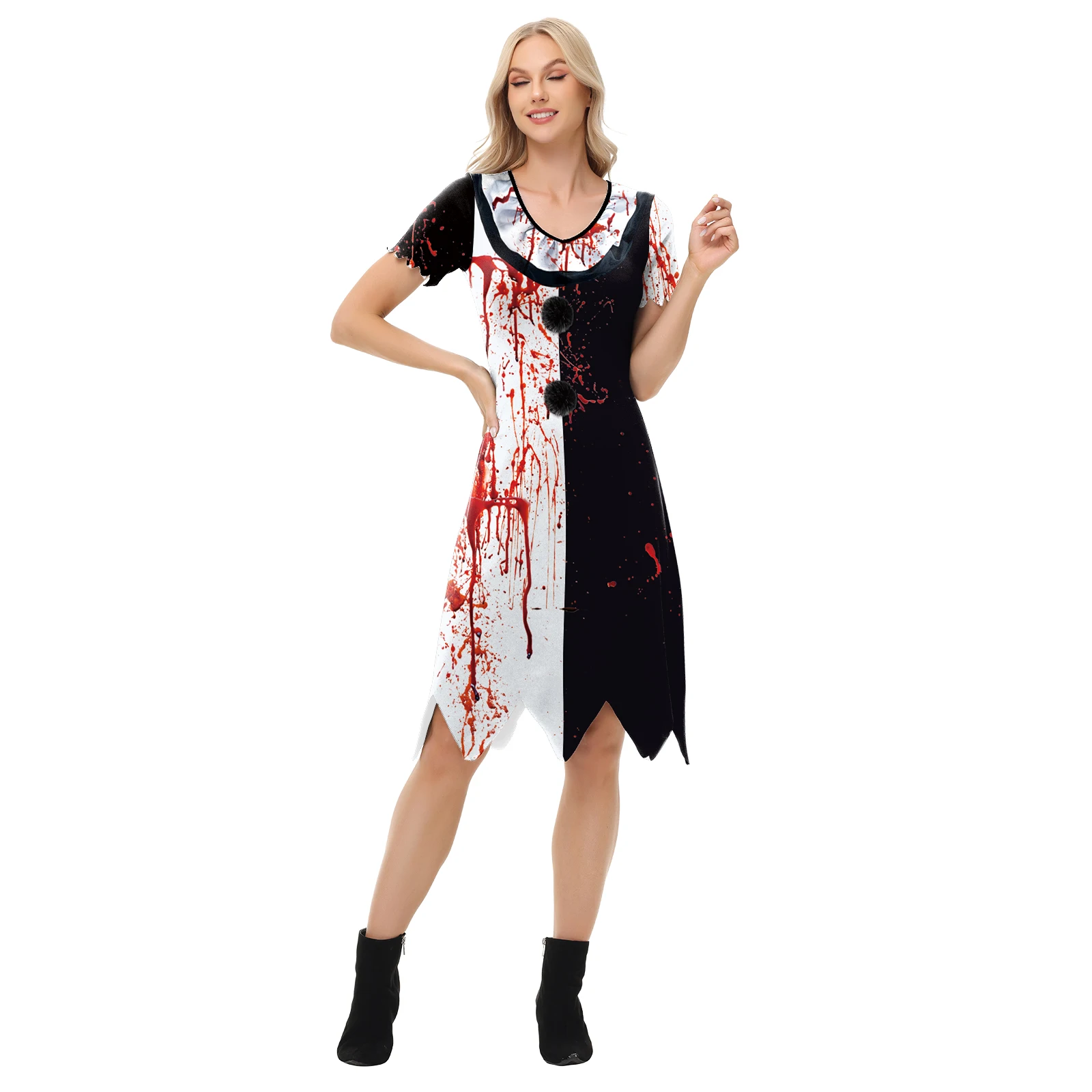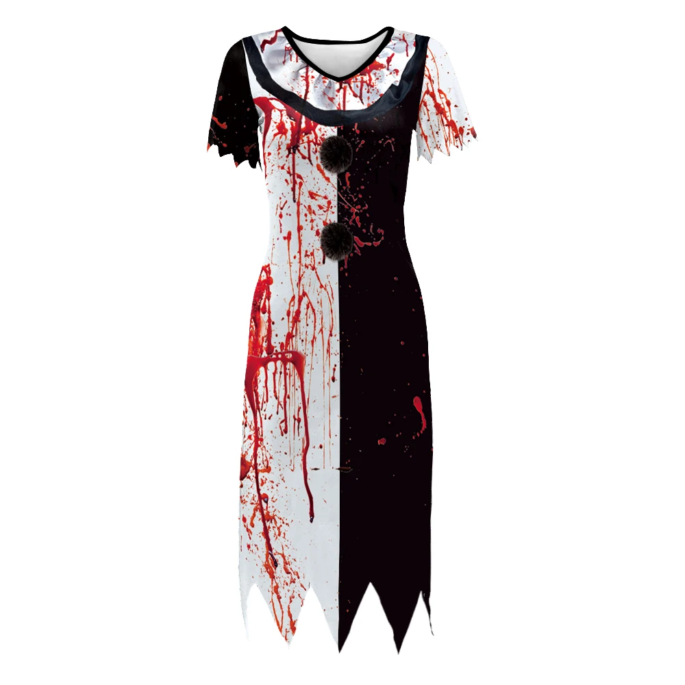 Creepy Horror Clown Halloween Costume – 3D Print Bloody Party Dress – Women Cosplay Outfit – TERF03