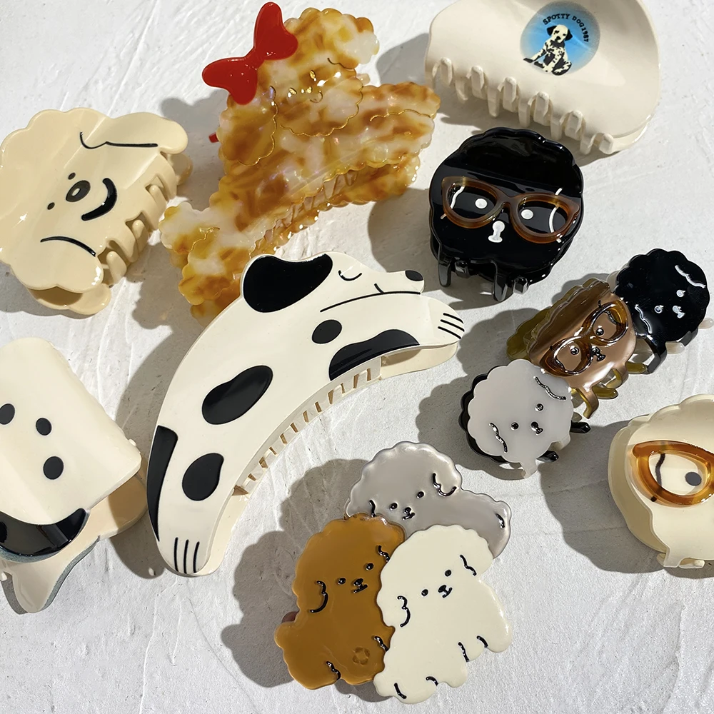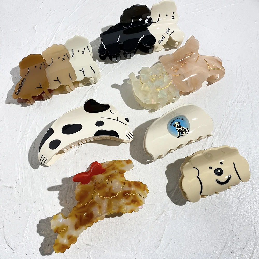 Cute Acetate Speckle Teddy Dog Animal Crab Hair Claw Clip For Women Girls Creative Funny Hairpin Barrettes Hair Accessories