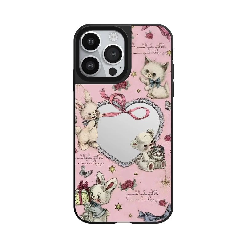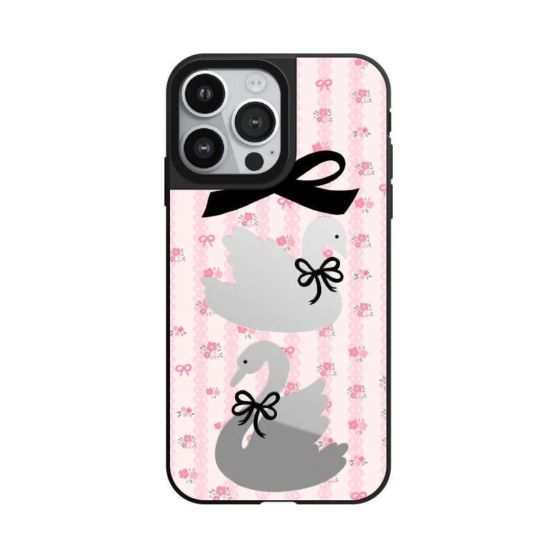 Cute Floral Heart Pearl Swan Rabbit Mirror Phone Case with MagSafe