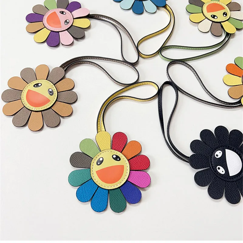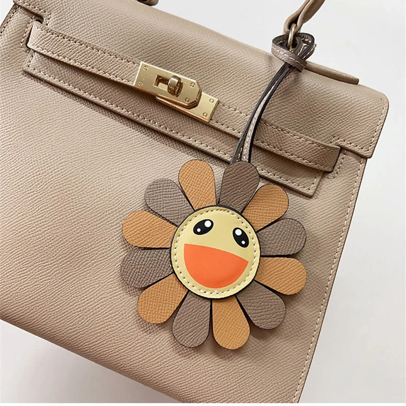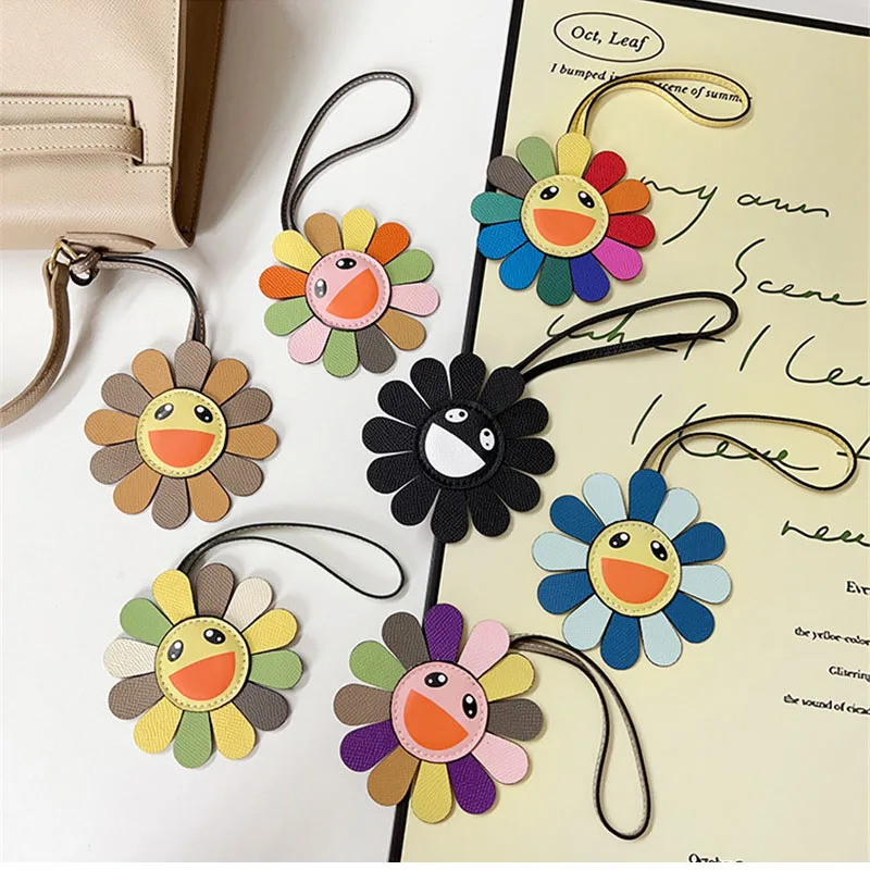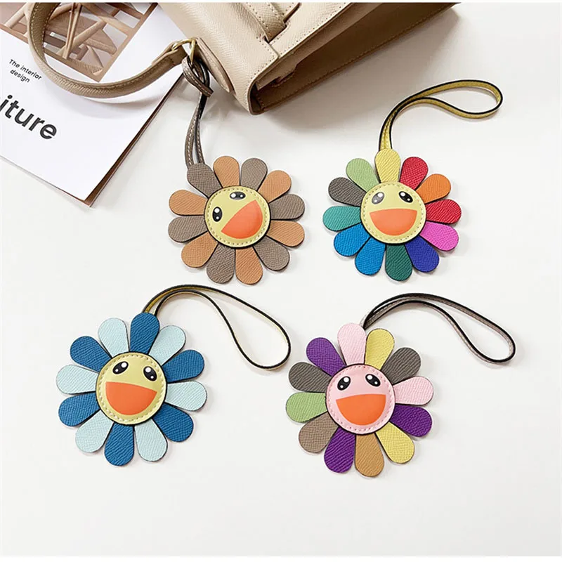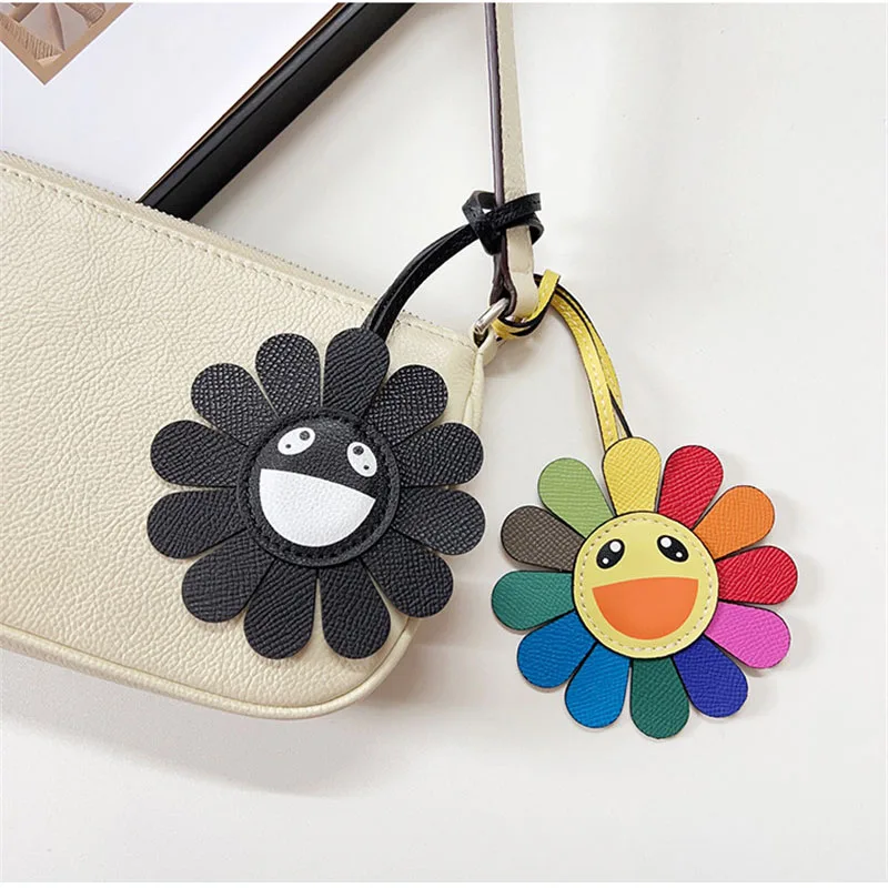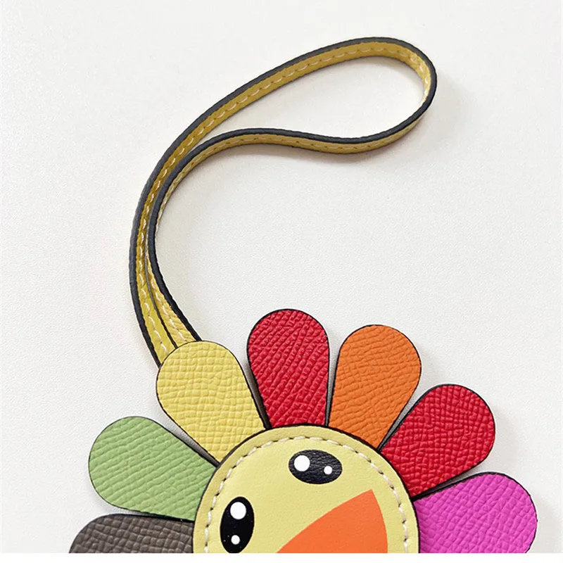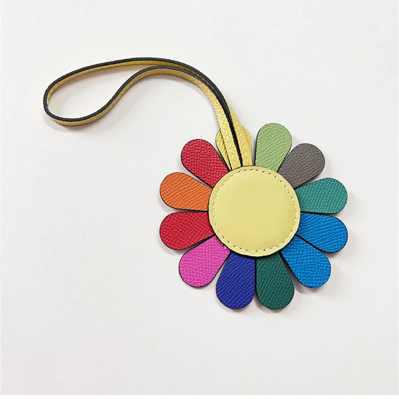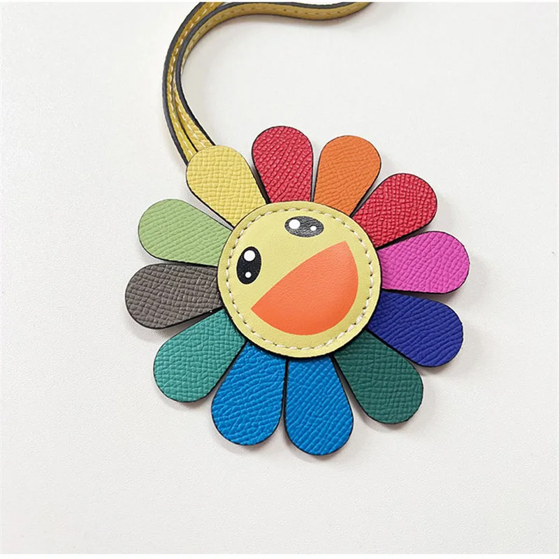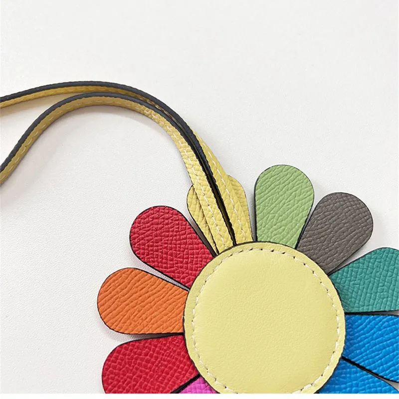 Genuine Leather Rainbow Sunflower Bag Charm, Pendant Keychain For Women Backpack