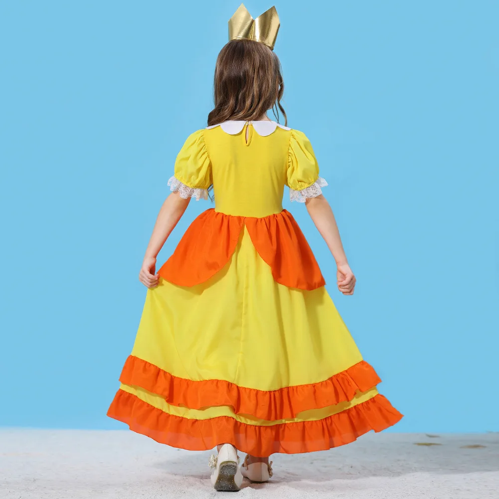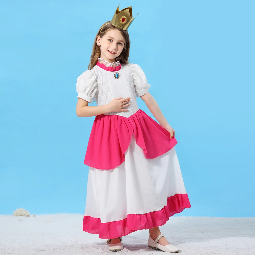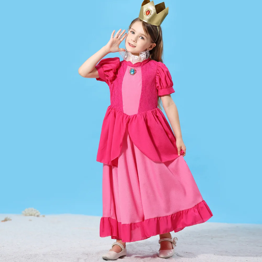 Girls Peach-Colored Princess Cosplay Dress – Summer Lace Applique Costume for Kids Halloween Dress Up
