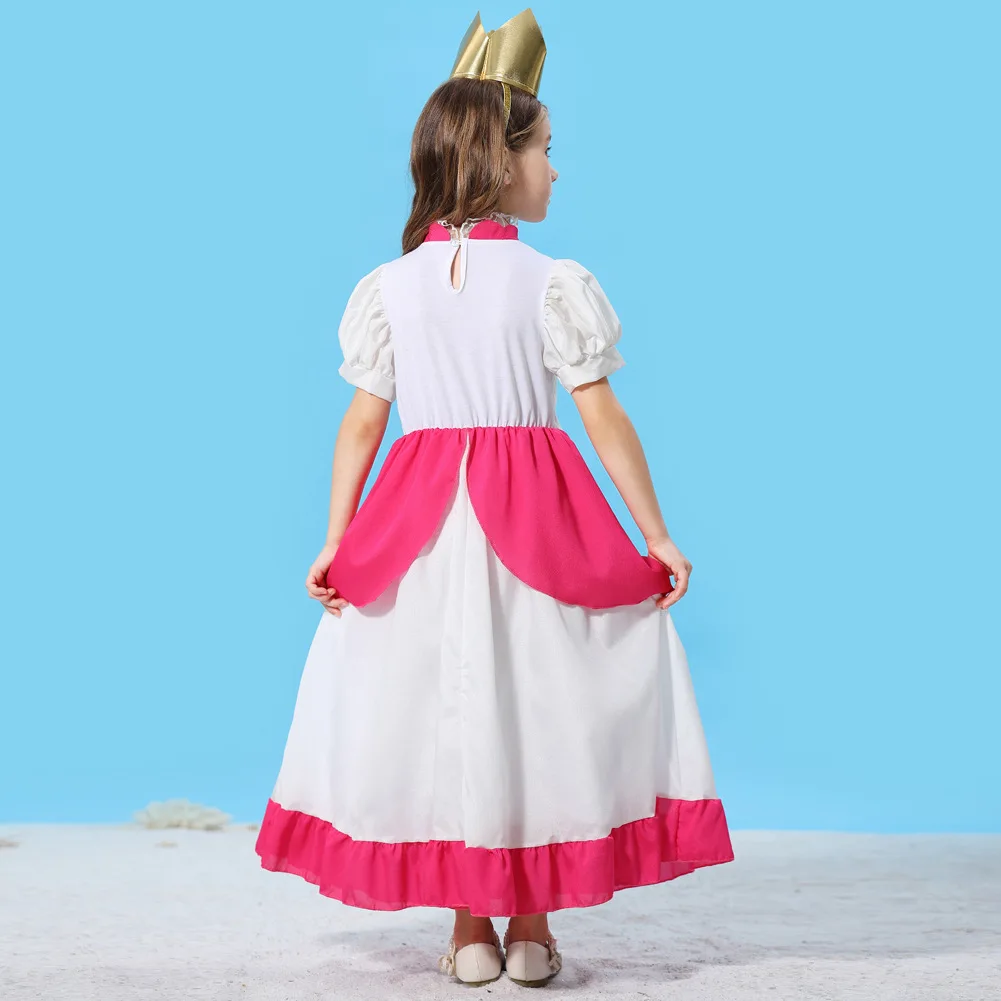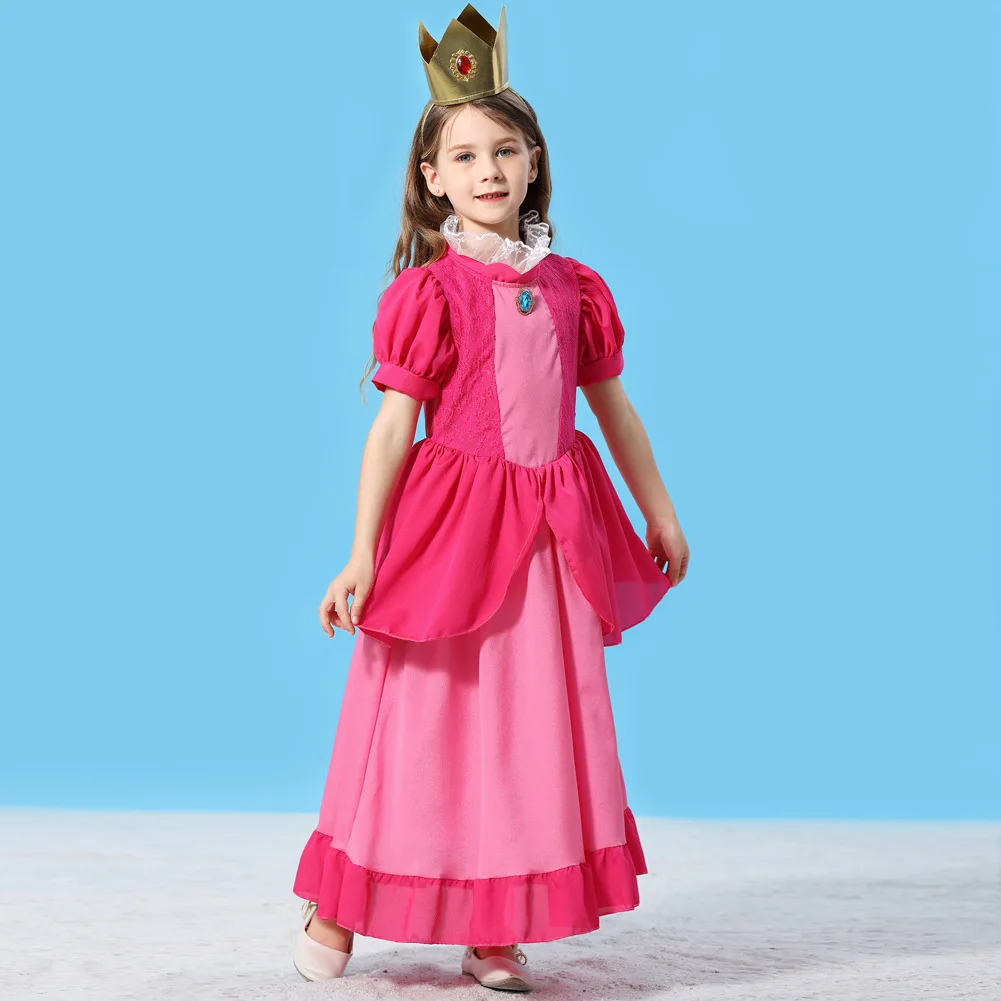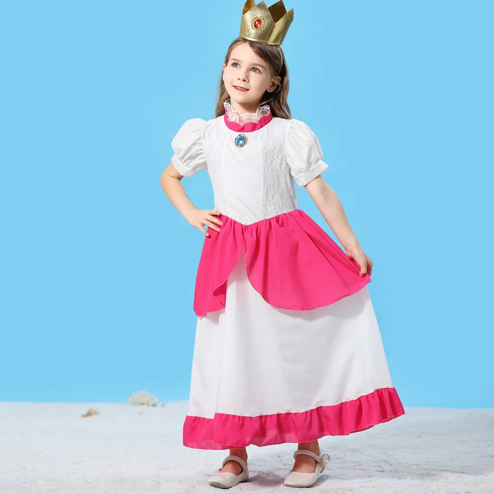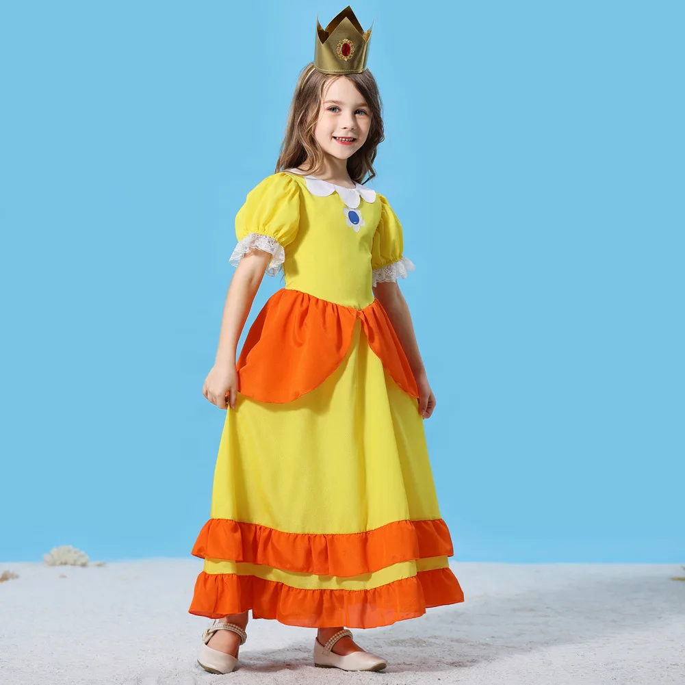 Girls Peach-Colored Princess Cosplay Dress – Summer Lace Applique Costume for Kids Halloween Dress Up