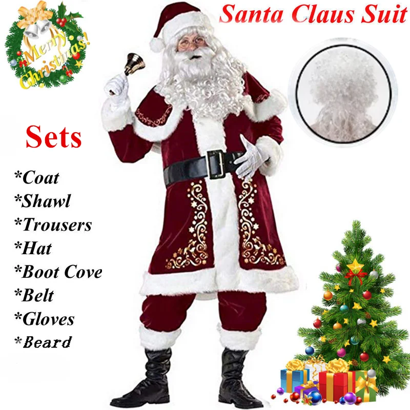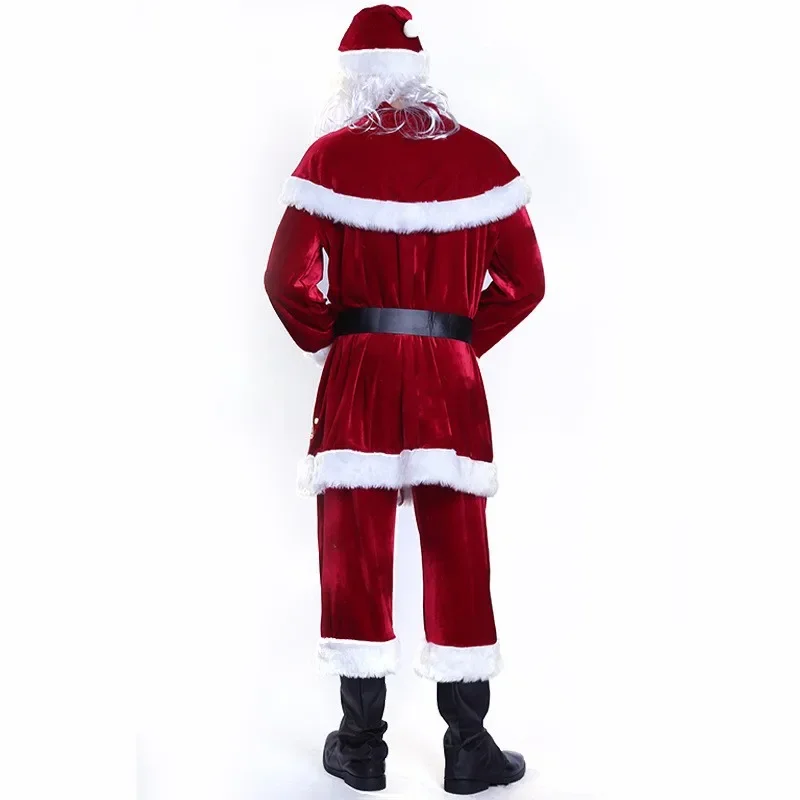 New Red Deluxe Velvet Fancy Dress Up Party Man Stage Costume Xmas Santa Claus Suit Adult Oversize Christmas Cosplay Costume