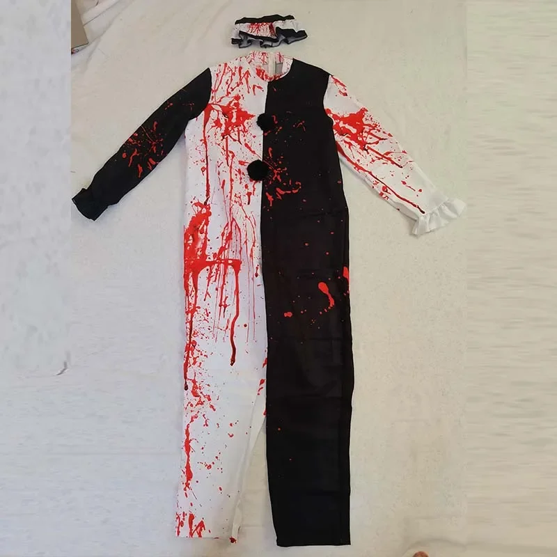 Scary Clown Cosplay Costume – Horror 3 Bloody Jumpsuit Outfit for Halloween, Carnival Party & Killer Clown Dress Up