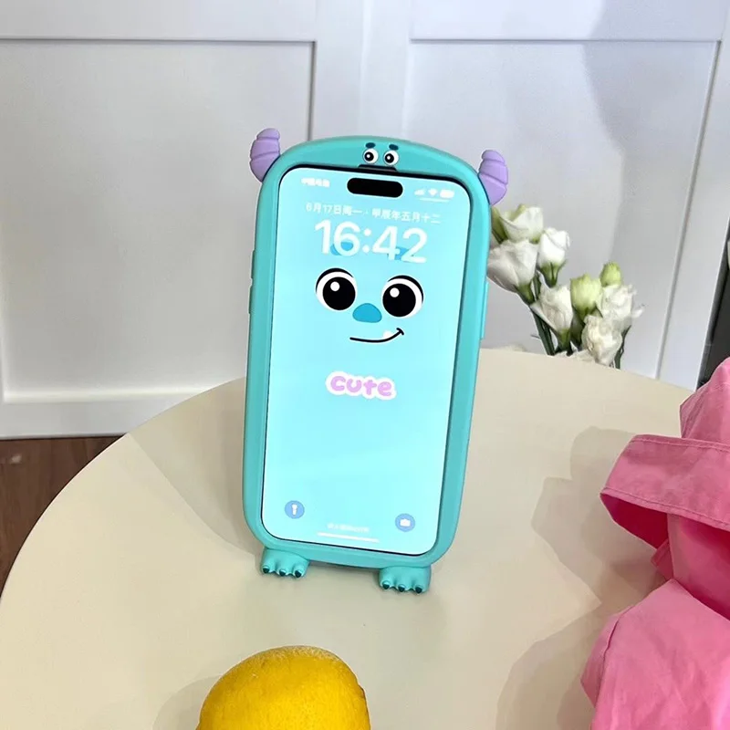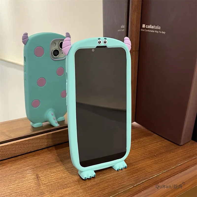 Super Cute Sulley Back Tail Holder Soft Silicon Phone Case for iPhone 12 13 Pro 11 14 15 Pro Max 14 Pro Cartoon Cover