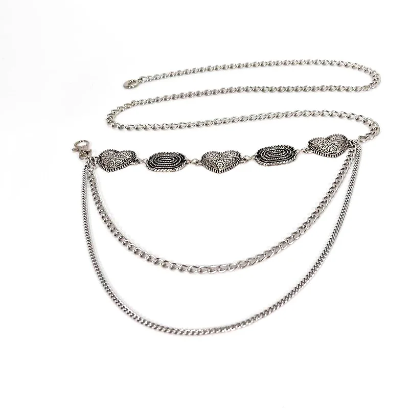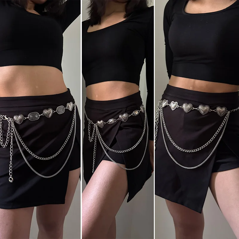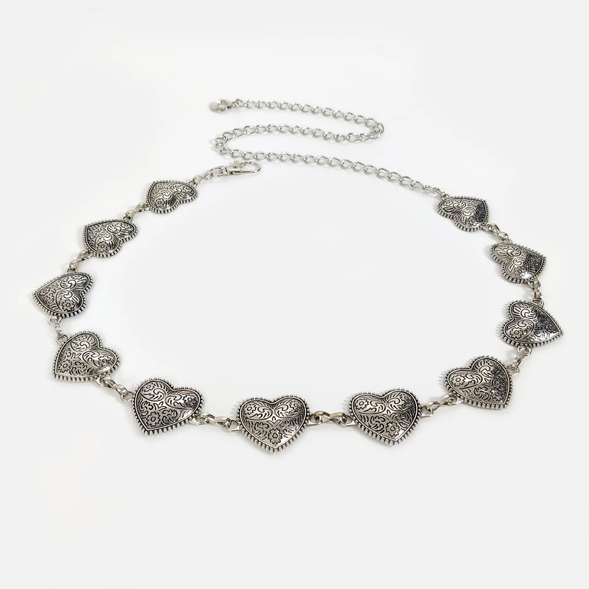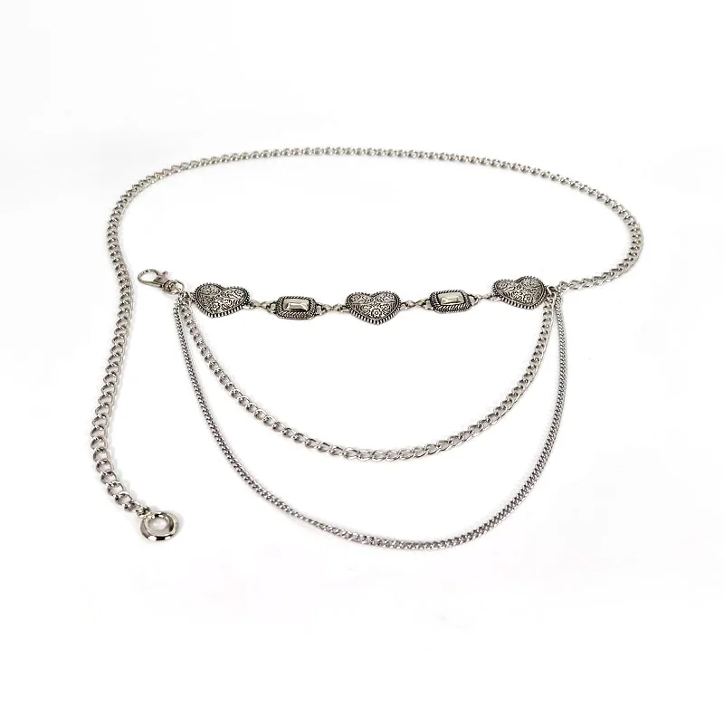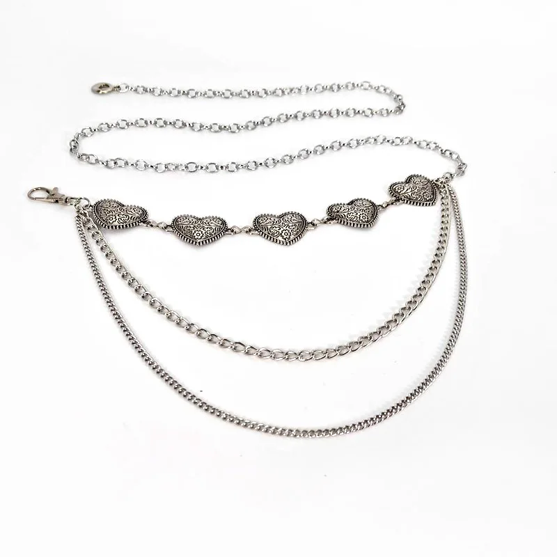 Vintage Gold Chain Belt Female Heart Metal Ladies Waist Punk Goth Belts For Women Silver Thin Waistband Pant Harajuku Accessory